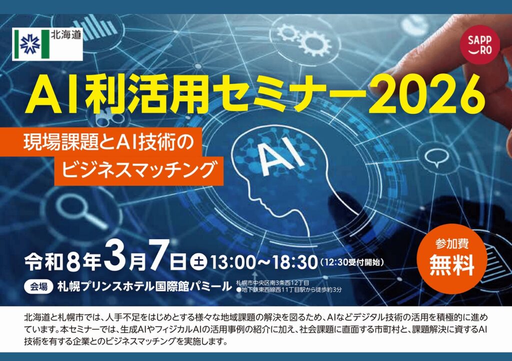北海道と札幌市では、人手不足をはじめとする様々な地域課題の解決を図るため、AIなどデジタル技術の活用を積極的に進めています。昨年11月に続き『AI利活用セミナー2… -