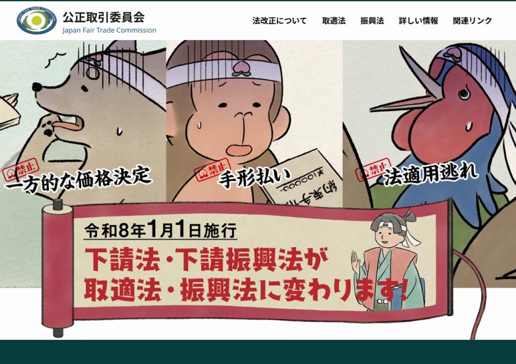 【お知らせ】取適法の特設サイトが開設されました(公取委)