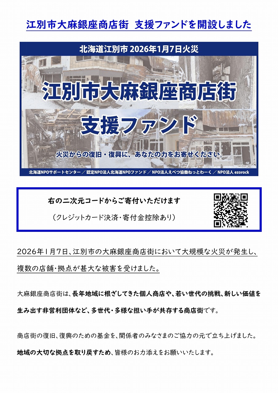 【お知らせ】江別市大麻銀座商店街支援ファンドのお知らせ
