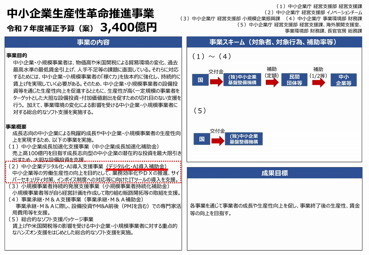 令和7年度補正予算案の概要抜粋(7ページ 中小企業生産性革命推進事業)