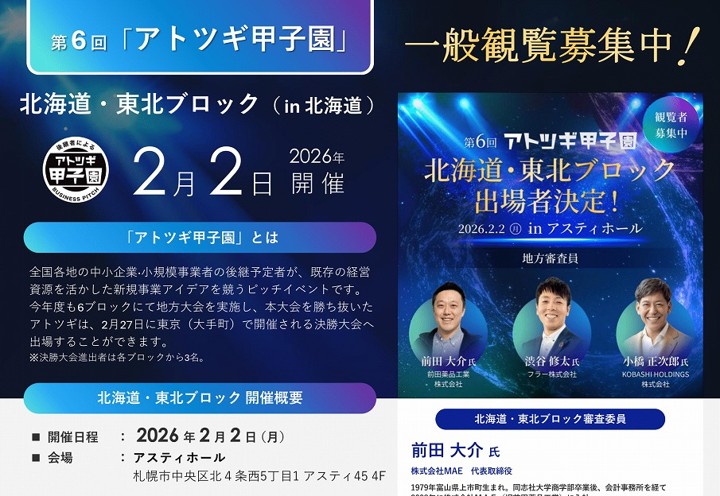 【お知らせ】アトツギ甲子園 地方大会(北海道・東北ブロック)会場観覧・オンライン観覧のご案内