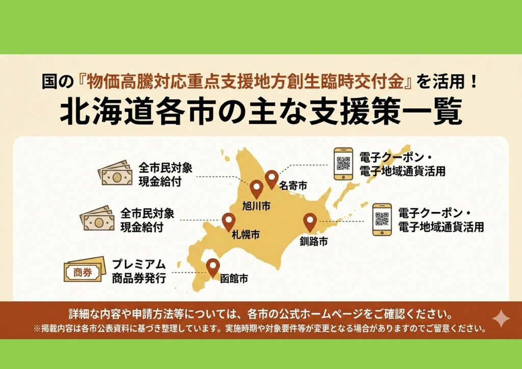 【お知らせ】北海道内各市の物価高騰対応支援策について